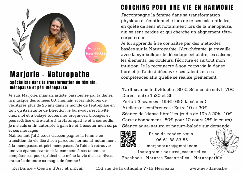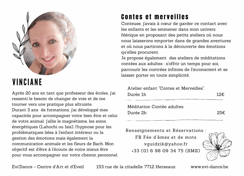 Le Centre Evi'Dance regroupe un large éventail de disciplines holistiques dédiées au mieux-être physique et psychique ainsi qu'au développement personnel et spirituel.