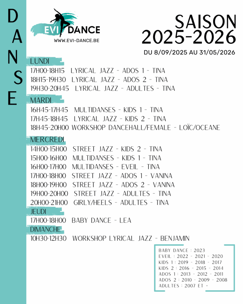 Mercredi (15h00-16h00) : Multidanses - Kids 1 - Tina (COMPLET)